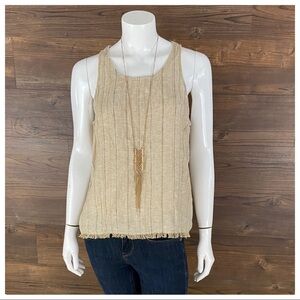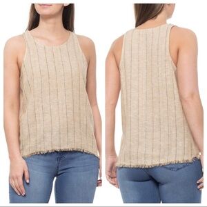 A breezy warm-weather top, Drew's Teagan Striped tank top offers a new look in a lightweight, cool and breathable linen-rayon blend with a boho-style frayed hem.