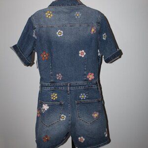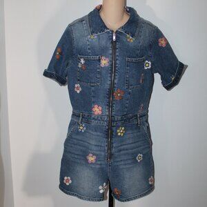 NWT Driftwood Denim Embroidered Romper Jumpsuit Zip Front L