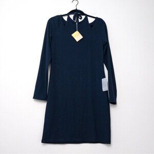 NWT Dual Nature Nordstrom Ribbed Cold Shoulder Halter Bodycon Mini Dress M Navy