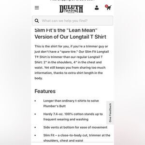 NWT Duluth Trading Co. White Slim Fit Long Tail Tee 100% Cotton Men’s Lean Mean
