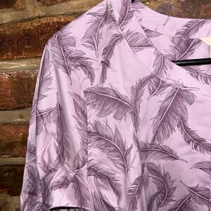 NWT Duluth Trading Co Wrinklefighter Purple Feather Button Down Tunic Top Women's Size Small