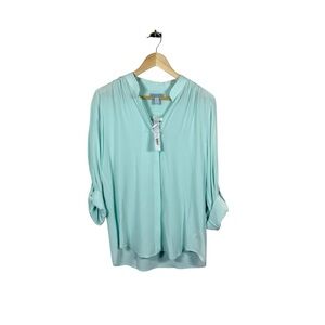 NWT Dylan Gray 100% Silk Button Down Roll Sleeve Blouse Mint Size M