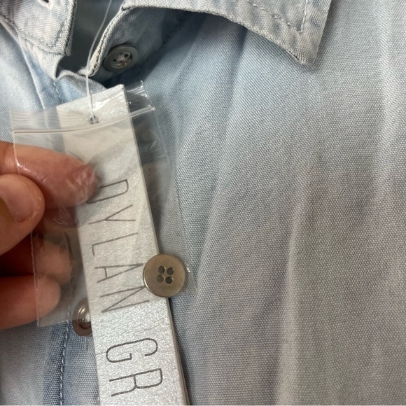NWT Dylan Gray Button Down Light Blue Short Sleeve Mini Shirt Dress Medium