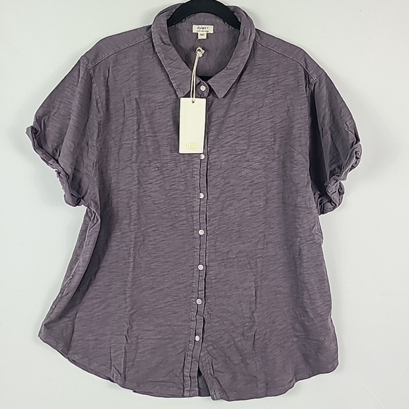 NWT Dylan Women's Short Roll Sleeve Button Down Shirt Purple Preppy Cottonsz XL. Pit to pit 23", length 26"