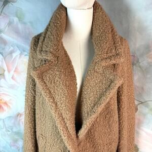 NWT Dynamite Manteau Teddy Bear Brown Long Coat In Pebble Stone
