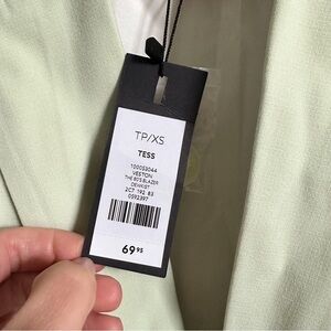 NWT Dynamite Pastel Green Dewkist Veston Oversized 80s Blazer. Size XS. Oversized fit, so will easily fit a small as well. Fully lined.