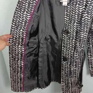 NWT EAST 5TH Womens XL Black White Belted Coat Jacket Chevron Buttons Lined