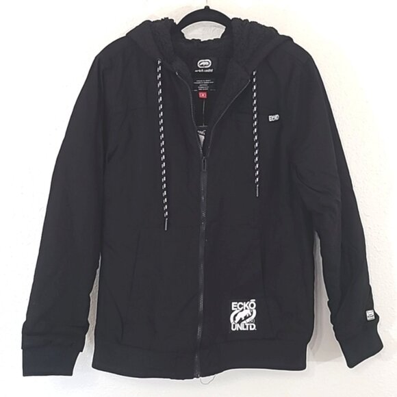 *NWT* ECKO UNLTD Men's Sherpa Lined Heavy Hooded Black Jacket, size Medium. Has multiple pockets. Zip closure. Brand new with tags.