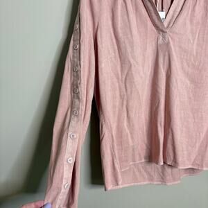 NWT ECRU Barrymore Button Accent Long Sleeve Shirt in Dusty Rose Pink Large