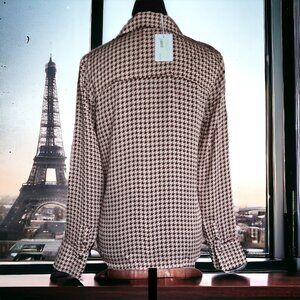 NWT ECRU XS Houndstooth Silky Button Up Blouse