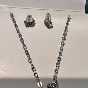 NWT EFFY Sapphire Blue Crystal Stone Pendant Chain Necklace & Stud Earring Set in Silver Tone