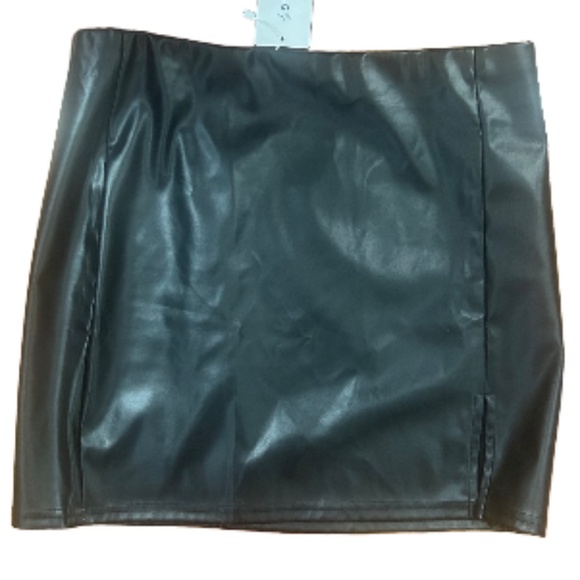 NWT EG. Chris G Black Faux Leather Skirt with slit Size XL.