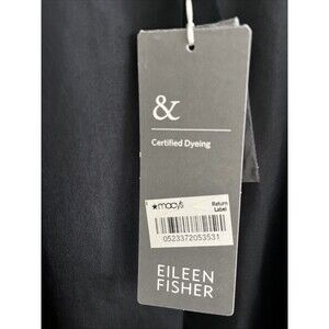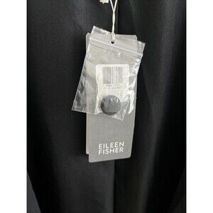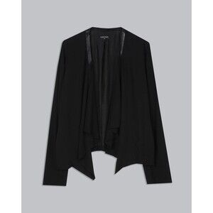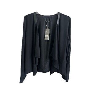 NWT EILEEN FISHER Black Drape Front Open Jacket Silk Georgette Leather Sz S