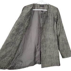 NWT EILEEN FISHER Jacket XS Gray Crinkle Jacquard Cotton Silk Open Front Pockets
