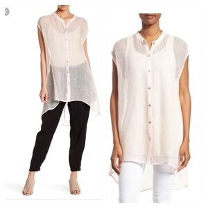 New with tags! Linen Blend Sheer Mandarin Collar Tunic