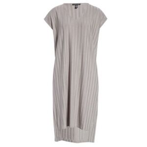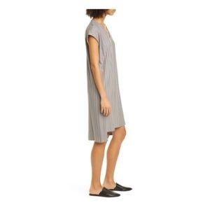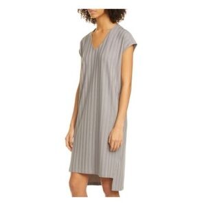 NWT EILEEN FISHER Telcel Rib Stretch V-Neck Dress, Size XS, Color Zinc