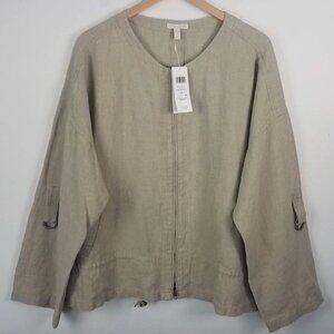 NWT EILEEN FISHER organic linen zip-front lagenlook jacket drawstring hem, sz XL