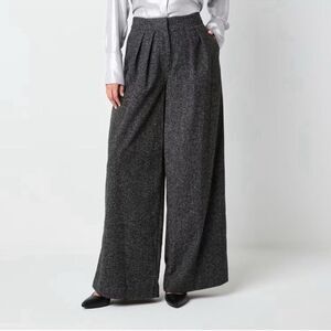 NWT ELEGANT WIDE-LEG PANTS Black melange Size 2