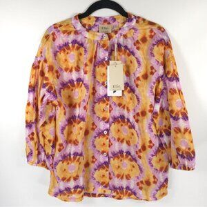 NWT ELIE. ELIE TAHARI Multicolored FLORAL Abstract Print Button Up Collarless Shirt ЕН422033 SMALL