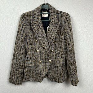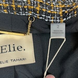 NWT ELIE Elie Tahari Black Mustard Tweed Double Breasted Blazer Sz 2
