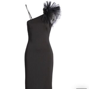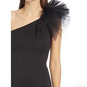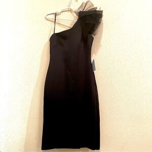 NWT ELIZA J Black one shoulder ruffles scuba midi dress womens 8 Whimsygoth