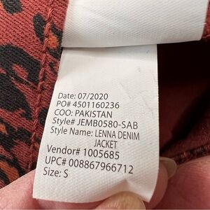 NWT ELLA MOSS Cheetah Sable Swirl Denim Jacket Women's Size S