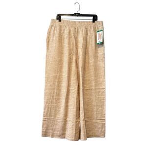 NWT ELLA MOSS Linen Blend Ankle Pants XL Tan Wide Leg Pockets Elastic Waist New