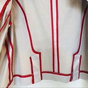 Cute lightweight crop blazer has 3/4 sleeves and sateen-like sheen. Hook and eye closures. Has side pockets!