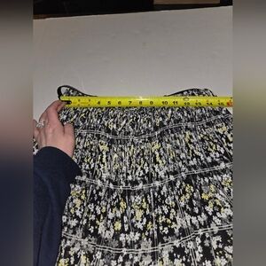 The Elle skirt is a chic piece in classic black, white, and yellow perfect for going out, parties, or a spring event. Offering a playful and elegant silhouette. The skirt's airy fabric and solid black waistband add a touch of sophistication to its overall look. Elastic waist either belt. New but belt holes look a little used, please see photos