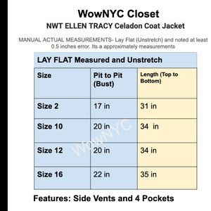 New ELLEN TRACY Celadon Pantone Light Woven Fringe-Trim Four Pocket Side Split Pack Longline Spring Blazer Coat Jacket XS, MEDIUM, LARGE, XL