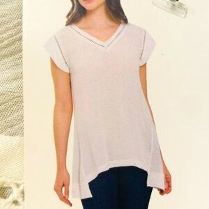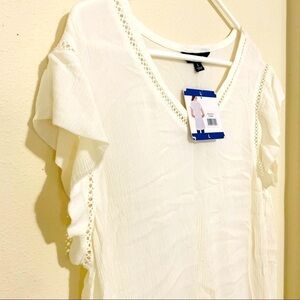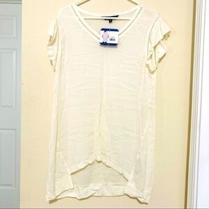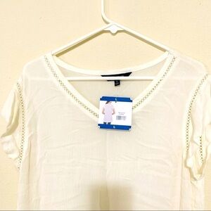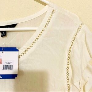 NWT ELLEN TRACY cream Flutter Sleeve Blouse sz L