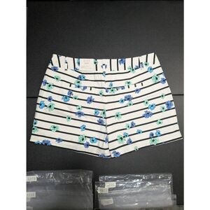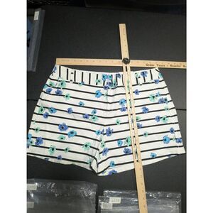 NWT ELLE White Black Blue Floral Striped Mid Waist Cotton Shorts 4" Inseam Women