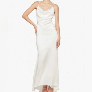 NWT ELLIATT Aisle dress in white satin cowl neckline with low back button accent