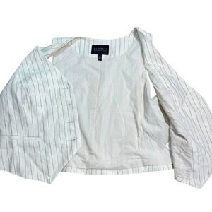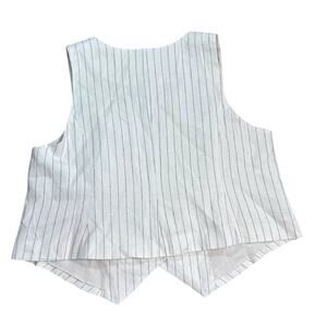NWT ELOQUII Linen Womens Split Hem Suiting Vest In Pinstripe Ivory Sz 14 Clean Girl Coastal