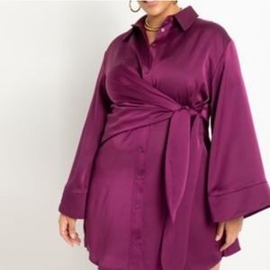 NWT ELOQUII SATIN TIE FRONT SHIRTDRESS $98