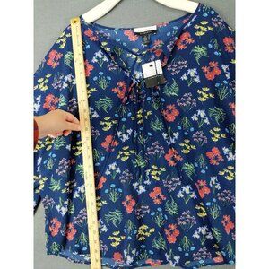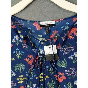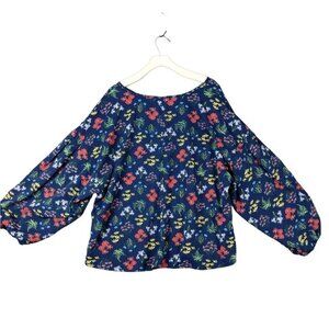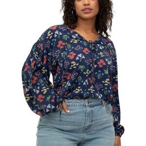 NWT ELOQUII Womens Elements Top Plus SZ 22 Balloon Long Sleeve Ties Floral Blue
