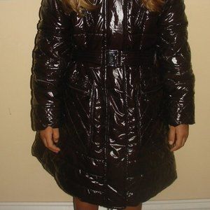 New 10 yr ELSY GIRL Removable Real Fur Hooded Luxury Winter Puffer Jacket Coat Parka Water Resistant Shiny Brown Chocolate Italian Designer