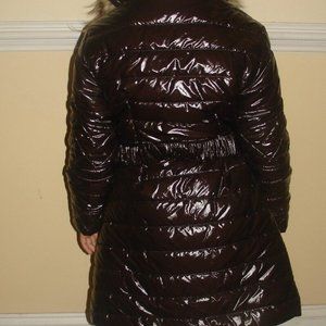 NWT ELSYGIRL RemovableFurHoodPufferShinyJacketCoatParkaBrownItalianDesig…