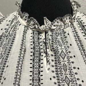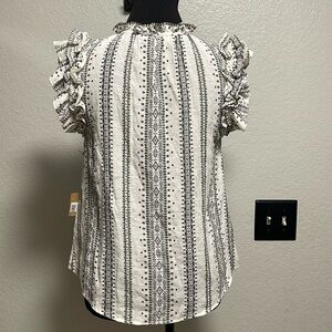 NWT E&M Black and White Print High Neck with Butterfly Sleeves SMALL