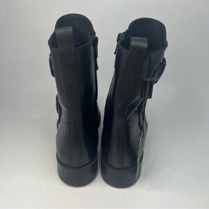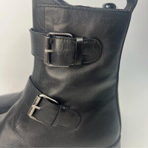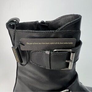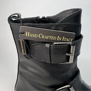 NWT EMANUELE CRASTO Made in Italy 🇮🇹 BLACK Finest Italian LEATHER Moto Boots Faux Double Buckle with Zip Closure