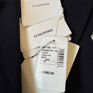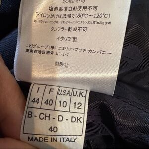NWT EMILIO PUCCI navy blue viscose CREPE Embroidered logo Blazer Jacket 44 Large