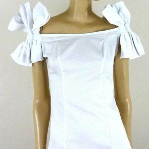 ❤️NWT EN BLANCO BY HUGO ESPINA WHITE RUNWAY 6 BOW SHOULDER TOP.