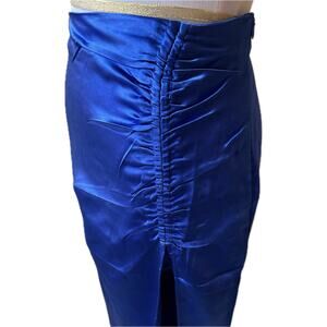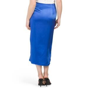 NWT ENDLESS ROSE Blue Satin Finish Front Slit Midi Skirt. Size M