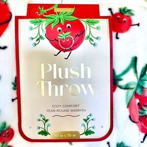 NWT ENVOGUE White Red Green 70”x60” MAMATO Tomatoes Mom Gift Plush Throw Blanket