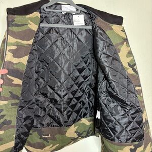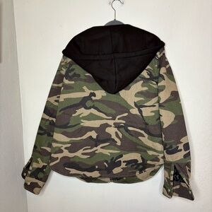 Stay stylish and warm with this camouflage hooded jacket. Perfect for outdoor adventures. New with tags. Quilted inside.