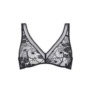 Made from stretchy Leavers lace, the underwired Belle de Nuit bra combines the comfort of a triangle style with the support of a moulded bra. Its archives-inspired lace creates a gorgeous floral pattern that alternates between opaqueness and sheerness.