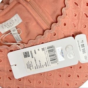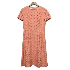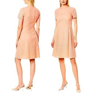 NWT ESCADA Peach Embroider Eyelet Lace Short Sleeve Pleated Fit & Flare Dress 6