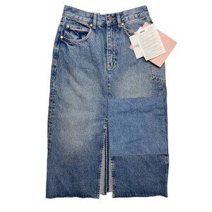 NWT, no flaws, size 34 (US 2). SSENTIEL ANTWERP Zimpala Blue Denim Midi Pencil Skirt. High waisted pencil denim skirt. Middle split in the front and back. 100% Cotton.