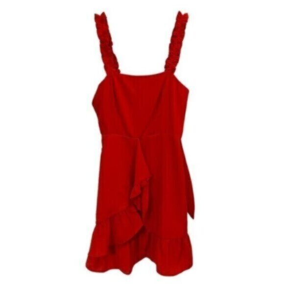 NWT E.SSUE | Women's Red Multi-Tiered Faux Wrap Ruffle Dress Size Small