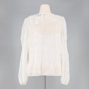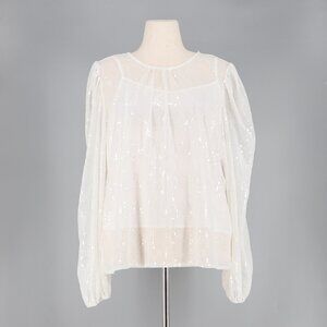 NWT EVA FRANCO ANTHROPOLOGIE Sheer Sequined Blouse White Size XLp